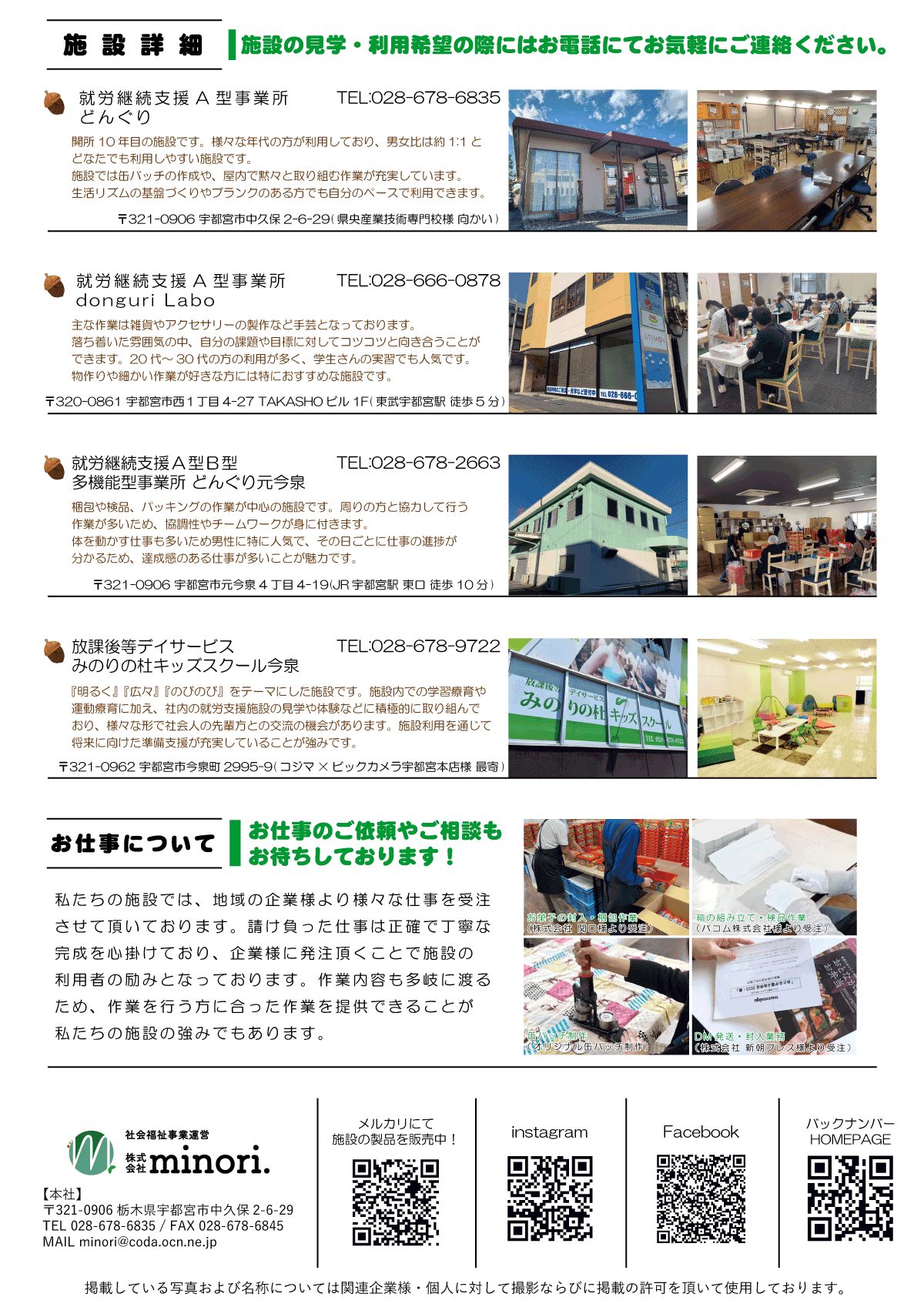 ◆ | 見学はどなたでも大歓迎です。職場選びで迷われている方、就労継続支援事業所が良く分からない方、学生さんでご家族の方と今後の進路などを考えるのに行ってみたいなどたくさんの方に見学して頂いております。 お電話頂ければ見学可能な日時を案内させて頂きますのでお気軽に各運営施設にお電話下さいませ。 |